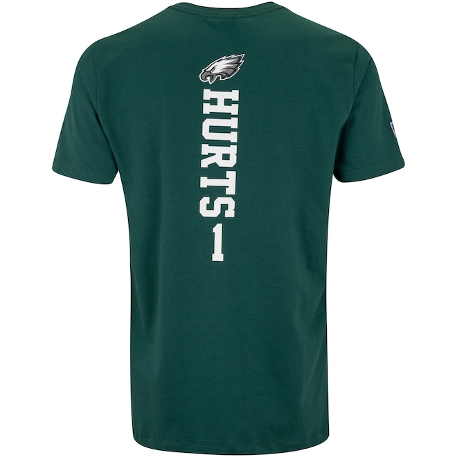 Mostre sua paixão pela NFL com a Camiseta do Philadelphia Eagles Masculina Player Hurts NF060! Com gola clássica e tira interna que reduz o atrito, essa peça oferece conforto e estilo para o dia a dia.