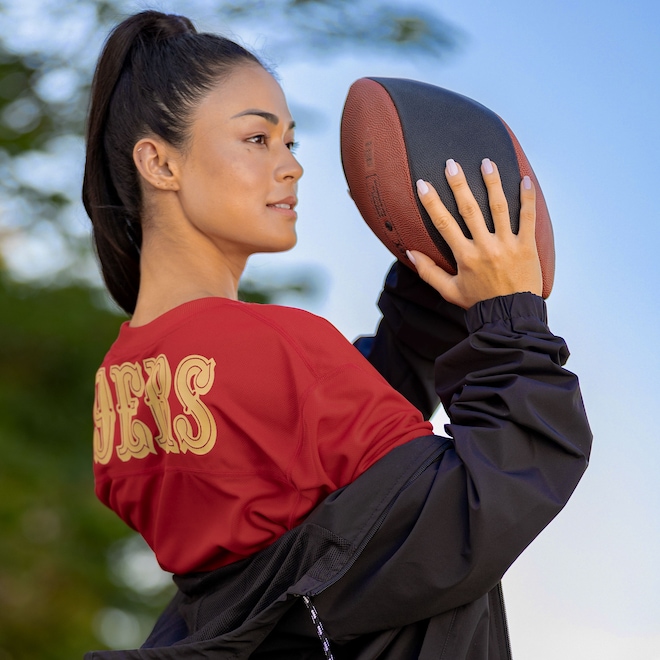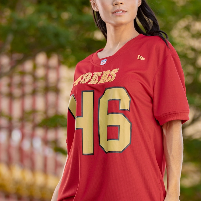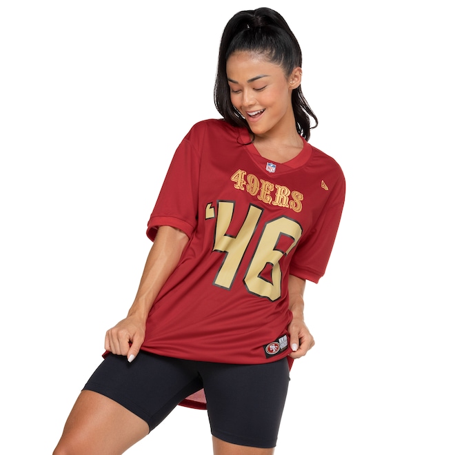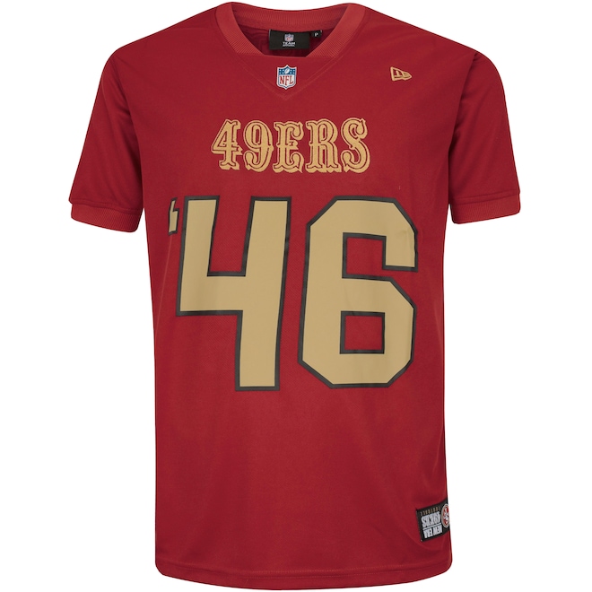 Time San Francisco 49ers Escudo Time Tipo de Manga Manga Curta Gola Tira interna que diminui o atrito de contato junto à pele
