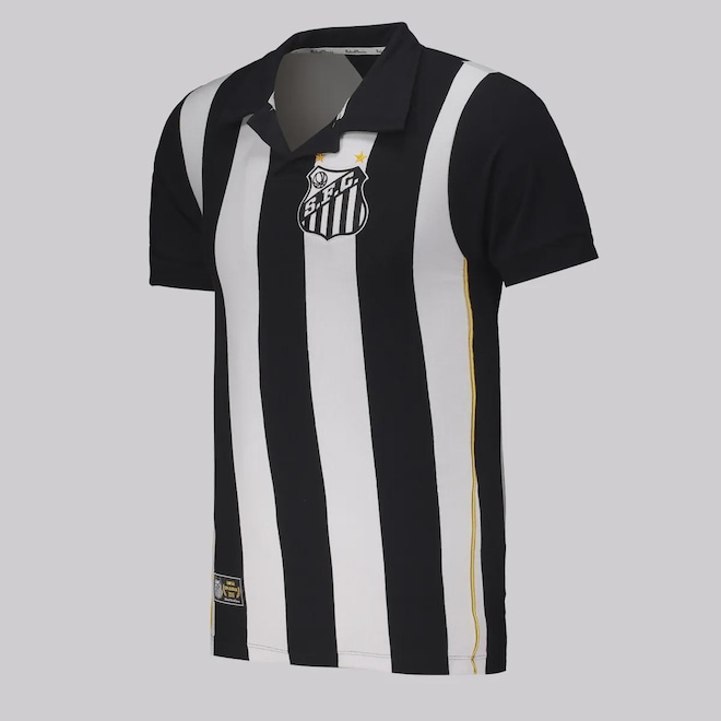 Composição: 96% Algodão e 04% ElastanoGola: Polo, com corte em YCor predominante: PretoGênero: MasculinoOrigem: NacionalEscudo: BordadoClube: SantosManga: CurtaDimensões Aproximadas (A x L):P: 67 x 46 cmM: 69 x 48 cmG: 71 x 50 cmGG: 73 x 52 cmEG: 75 x 54 cm