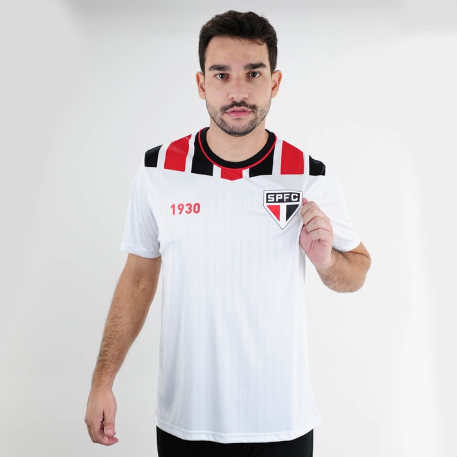 Camiseta de Time Braziline São Paulo Amago Branco - Masculino: Mostre sua paixão pelo Tricolor com estilo e conforto! Ficha Técnica: Marca: Braziline Gênero: Masculino Material: 100% Poliéster Tecido: Dry Risca Manga: Curta Gola: Redonda, com vivo contrastante Cor: Branco com detalhes tricolores em preto e vermelho Estampa: Tricolor em formato de pala na frente; escudo do time do lado direito e 1930 do lado esquerdo; SPFC estampado na parte de trás Indicação de uso: Diário e eventos esportivos Conteúdo da embalagem: 1 Camiseta de Time Braziline São Paulo Amago Branco - Masculino Demonstre todo o seu orgulho pelo São Paulo Futebol Clube com a camiseta Amago da Braziline! Feita em tecido Dry Risca, ela oferece conforto e respirabilidade, sendo ideal para os dias mais quentes. O design moderno, com gola contrastante e estampa tricolor, destaca sua paixão pelo time em qualquer ocasião.