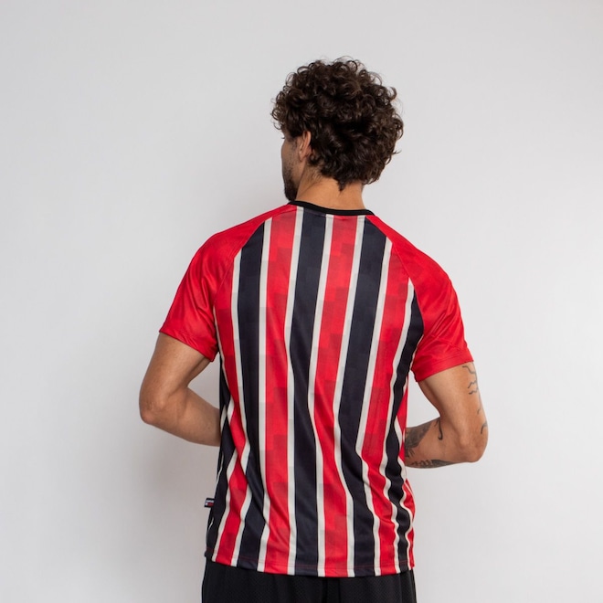 Estampa sublimada com o escudo e as cores do São Paulo, garantindo um visual autêntico e marcante.