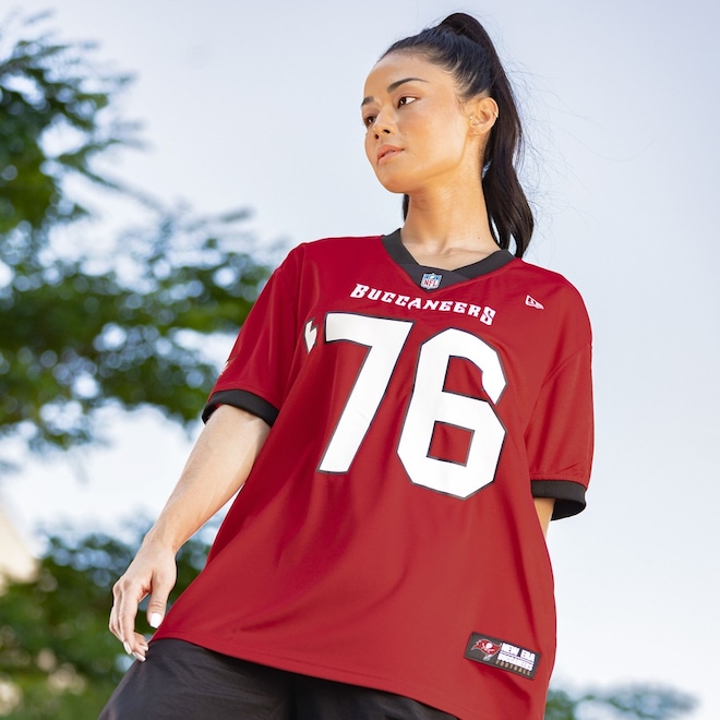 - Sobre o produto - Ótima para você usar dentro ou fora dos estádios e demonstrar o amor ao time é a Camiseta do Tampa Bay Buccaneers NFL New Era Unissex Jersey Core. - A camiseta do Tampa Bay Buccaneers é de mangas curtas, com gola “v” e tira interna em tecido que ajuda a diminuir o atrito de contato com a costura. - Sua estampa personalizada vai te deixar cheio de estilo. - Não fique fora dessa e adquira já a sua! MODELO FEMININA VESTE TAMANHO MALTURA: 164 cmBUSTO: 86 cmCINTURA: 62 cmQUADRIL: 92 cmMODELO MASCULINO VESTE TAMANHO GALTURA: 180 cmTÓRAX: 97 cmCINTURA: 83 cmQUADRIL: 99 cm- ref: 977794