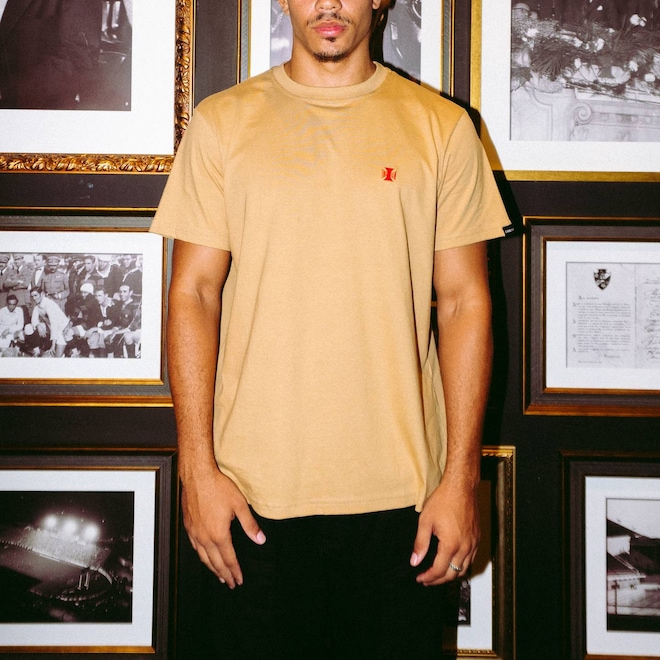 Composta por meia malha strong (175g/m²), entrega um caimento estruturado e toque macio. A gola em ribana canelada reforça o acabamento, enquanto os bordados autorais dão voz a histórias que se refletem em cada detalhe.