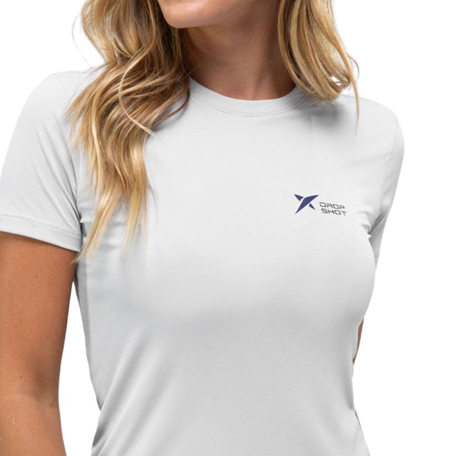 Conheça as características da Camiseta Drop Shot Baby Look Logo Brancp