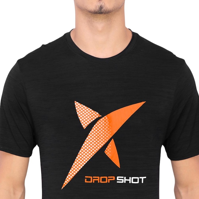 - Detalhamento: Camiseta gola careca, mangas curtas, logo e escrita Drop Shot na parte frontal na altura do peito, logo Drop Shot na nuca parte traseira, tecido super leve e refrescante;