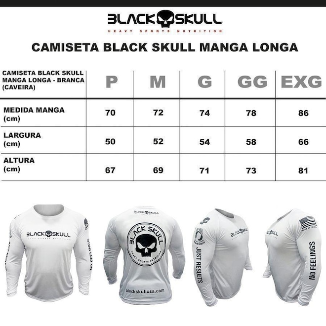 Camiseta Black Skull Manga Longa Dry Fit - Masculina