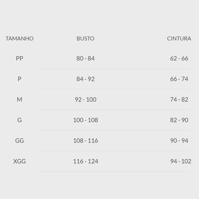 Tamanho | Busto | Cintura
