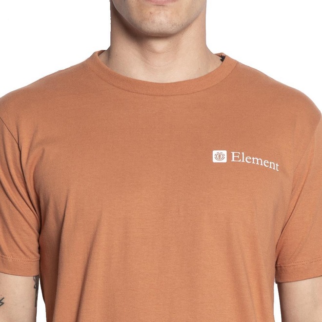 Camiseta Element feita em modelagem regular, estampa frente e costas e etiquetas personalizadas.