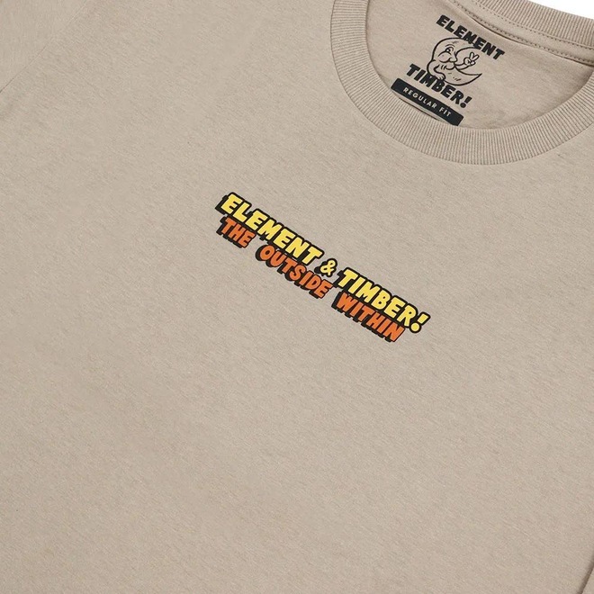 Camiseta Element feita em modelagem regular, estampa frente e costas e etiquetas personalizadas.