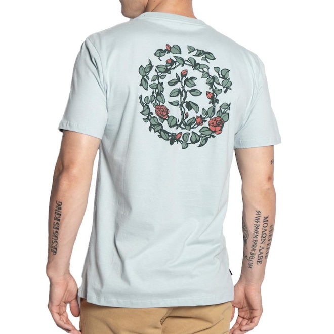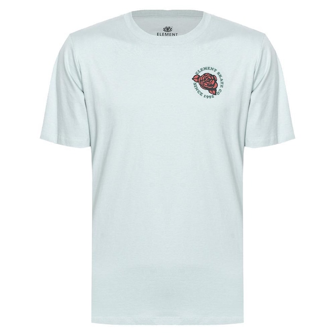 Camiseta Element feita em modelagem regular, estampa frente e costas e etiquetas personalizadas.