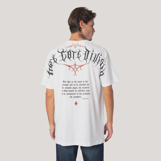 Herança da raiz californiana da MCD, uma linha que sempre está presente nas coleções, dessa vez com uma inspiração em tipografias de bandas de metal e estética gótica.ref: M17BT4