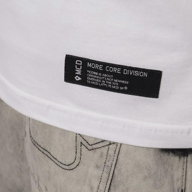 · Etiqueta more core horizontal bordada na barra costa.
