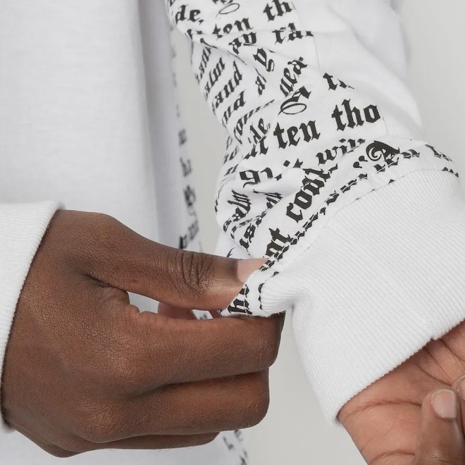 Linha que retorna na coleção de inverno 24, mas dessa vez em uma releitura com formas mais góticas e rebuscadas. Essa linha une a caligrafia já conhecida com interferência de símbolos sacros, herdados da raiz californiana da MCD.ref: M17DHI