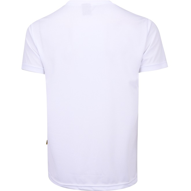 Possui gola careca com tira interna em tecido que ajuda a diminuir o desconforto do atrito de contato e manga curta para facilitar a mobilidade natural dos movimentos.