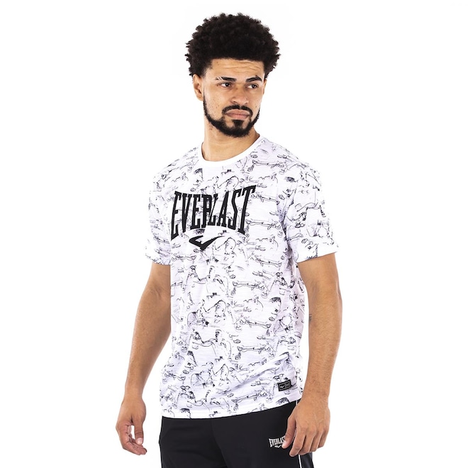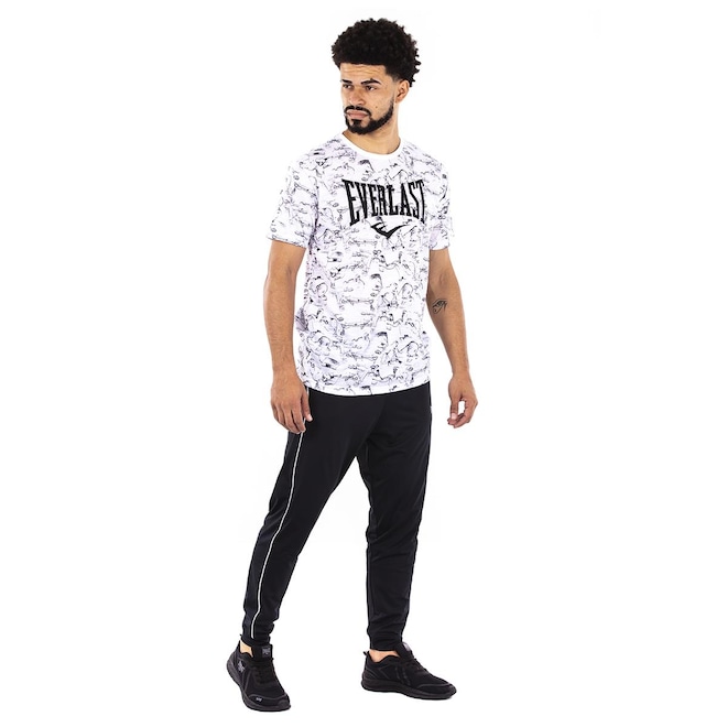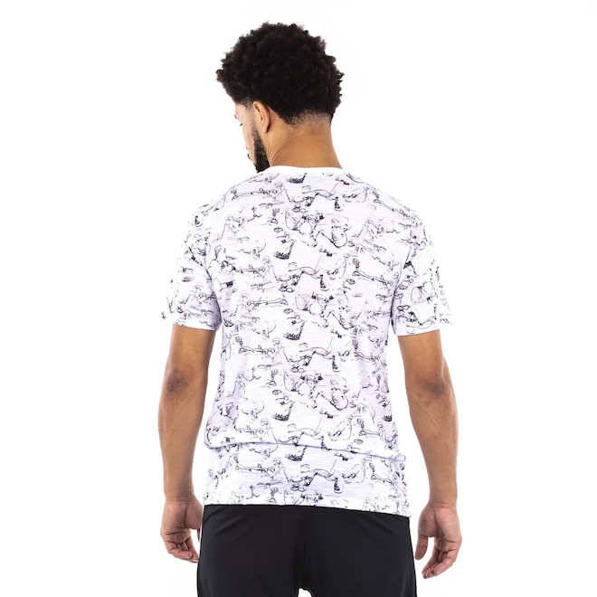 Camiseta masculina confeccionada em malha. A modelagem slim é mais ajustada e sofisticada. Possui estampa descontraída.