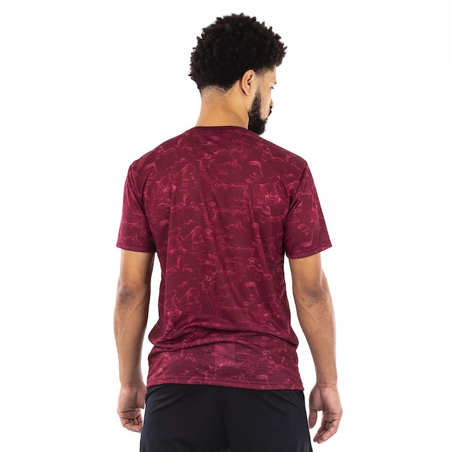 Camiseta masculina confeccionada em malha. A modelagem slim é mais ajustada e sofisticada. Possui estampa descontraída.
