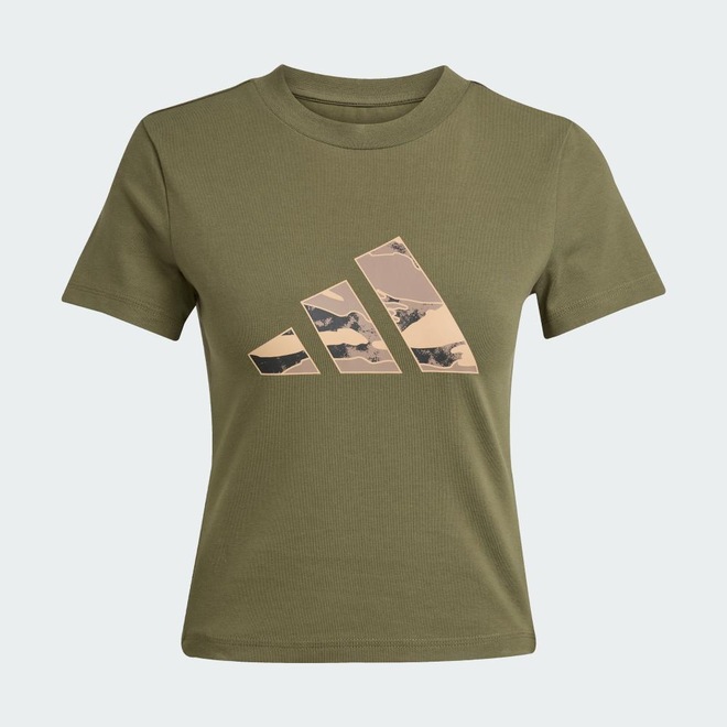 Esta camiseta da adidas foi feita para as aventuras do dia a dia. O tecido de algodão macio com um pouco de elasticidade mantém você confortável desde o momento em que o veste. Uma estampa de camuflagem preenche o logotipo Três Barras no peito.