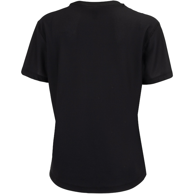 Conta com gola careca com tira interna e detalhes refletivos.