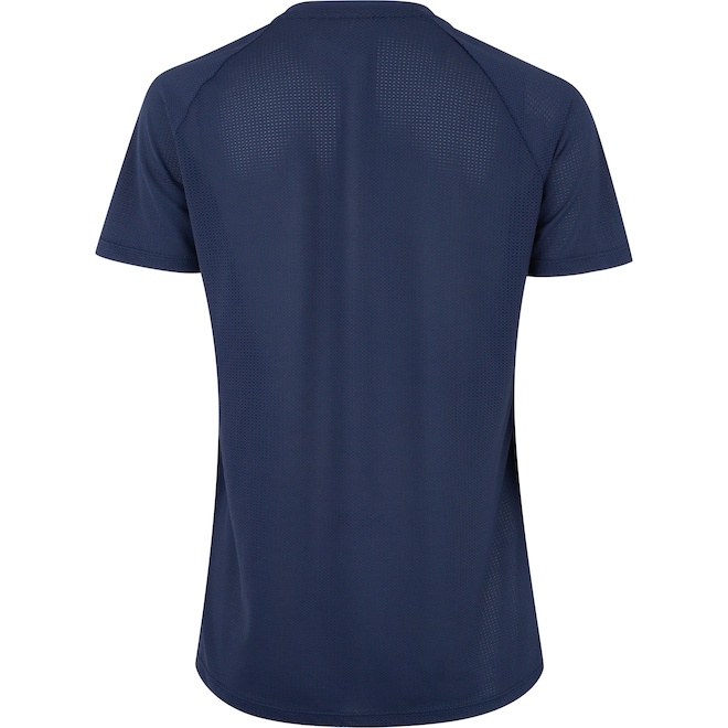 A gola clássica e as mangas curtas garantem um ajuste confortável e versátil, ideal para qualquer atividade física.