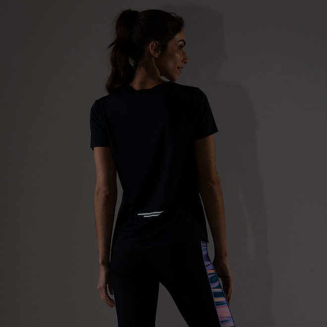 Conta com detalhes refletivos para te iluminar em locais de pouca visibilidade, além de costura selada que diminui o atrito sobre a pele.