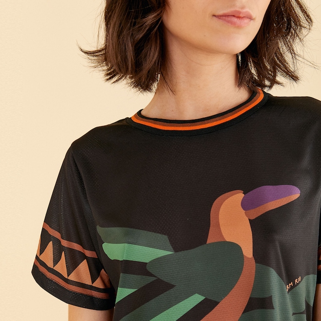 Com o toque da Farm, esta camiseta apresenta uma estampa única, que adiciona estilo e charme às suas sessões de treino. Você se destacará em qualquer atividade!
