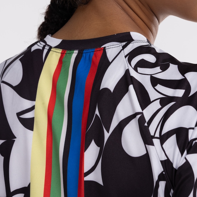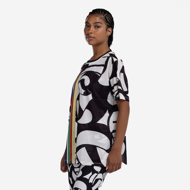 Feita com tecnologia Dry Fit, essa camiseta garante que você se mantenha seca e confortável durante toda a sua atividade, absorvendo o suor e oferecendo frescor e ventilação. Sua estampa de folhagem tropical traz uma vibe autêntica e cheia de energia, enquanto o tecido respirável promove leveza e liberdade nos movimentos.