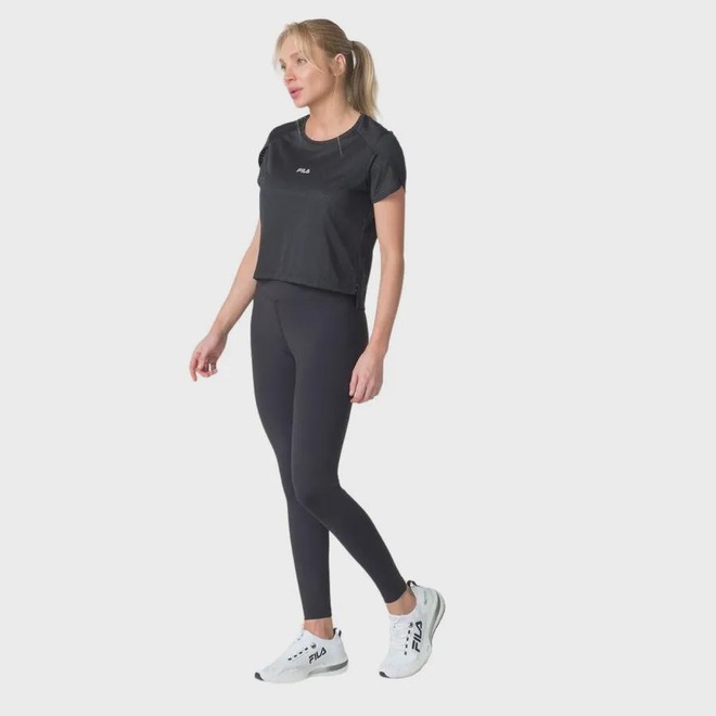 Blusa feminina confeccionada em malha telada de poliéster para maior respirabilidade durante a prática de exercícios. Modelagem cropped com manga curta transpassada. Seu tecido contém a tecnologia FLOW, que proporciona rápida secagem, mantendo o corpo na temperatura ideal para a prática esportiva. Possui gola arredondada, aberturas laterais na barra, cobregola personalizado, barra traseira maior que a barra frontal e logo Fila Letter em relevo centralizado na parte frontal superior.