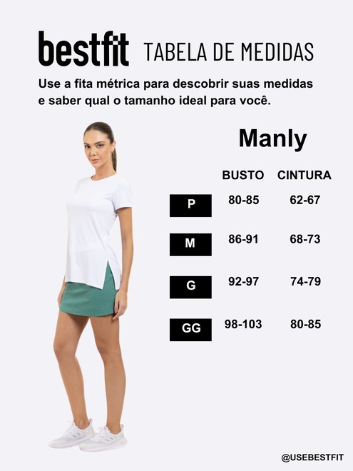 A Blusa Manga Curta Manly Básica Feminina é a escolha certa para quem busca conforto e liberdade no dia a dia ou nos treinos. Seu corte solto e tecido leve garante respirabilidade e um toque suave na pele, enquanto as aberturas laterais em V trazem mais mobilidade e estilo ao visual. Versátil e prática, é perfeita para compor looks esportivos ou casuais com facilidade. Garanta já a sua e eleve seu bem-estar com estilo e leveza! Especificações: Manga curta. Abertura em V nas laterais. Material leve e respirável. Corte solto. Benefícios: Ideal para atividades físicas ou uso casual, oferecendo liberdade de movimentos. O corte solto promove sensação de conforto e frescor durante o uso. O tecido respirável ajuda a manter o corpo seco e arejado em dias quentes. Aberturas laterais em V proporcionam caimento moderno e facilitam a movimentação. Peça versátil que combina com leggings, shorts ou calças para diferentes ocasiões. Composição: 100% Poliamida. Cuidados e Conservação: Lavar à mão ou em ciclo delicado com sabão neutro. Evitar alvejantes e amaciantes agressivos. Secar à sombra, em superfície plana. Não passar ferro diretamente sobre o tecido. Evitar contato com superfícies ásperas para não puxar fios.