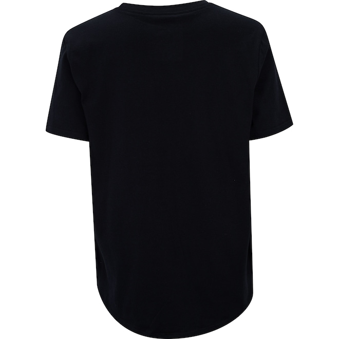 Possui mangas curtas, sua gola é careca com tira interna e canelada, além disso o logo da marca é bordado.