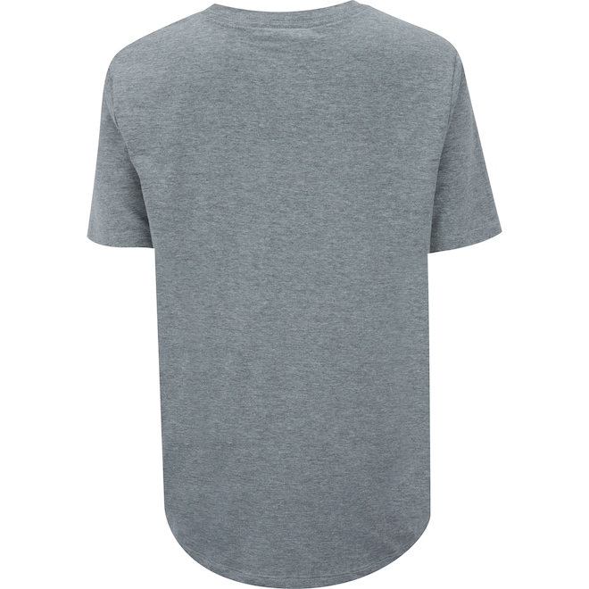 Possui mangas curtas, sua gola é careca com tira interna e canelada, além disso o logo da marca é bordado.
