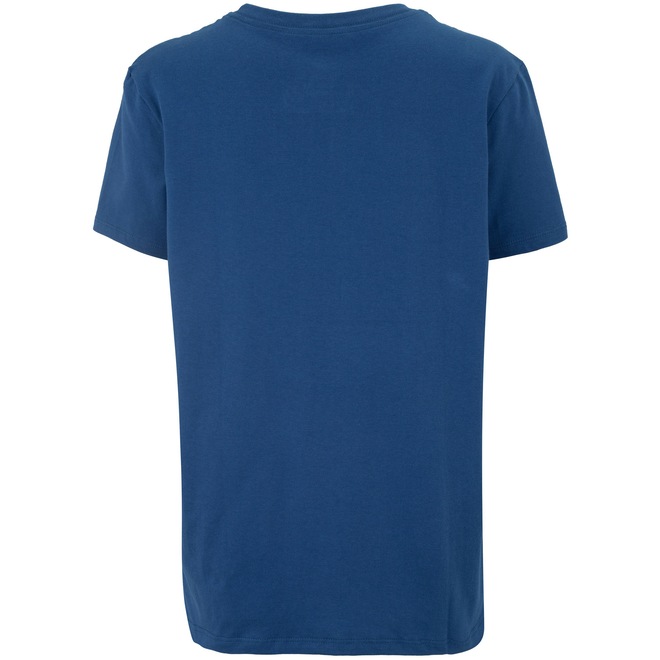 Possui mangas curtas, sua gola é careca com tira interna e canelada, além disso o logo da marca é bordado.