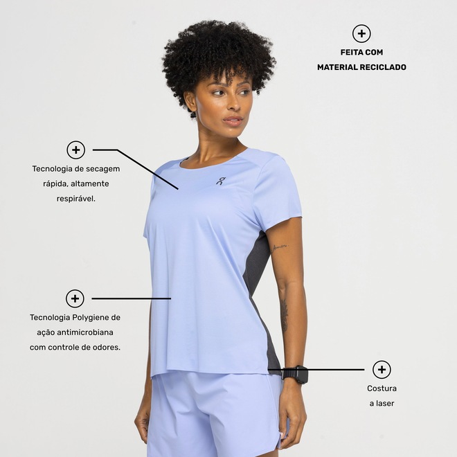 Conta ainda com tecnologia Polygiene de ação antimicrobiana com controle de odores, além de detalhes refletivos que aumentam a visibilidade da esportista, principalmente em treinos noturnos.