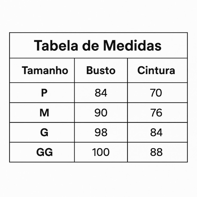 Tabela de Medidas (Busto x Cintura):