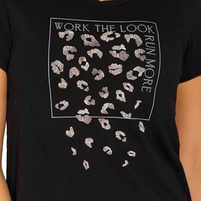 Com a Camiseta Run More Cotton Urban Feminina você cria um visual descomplicado, confortável e cheio de personalidade. A peça possui decote redondo e shape soltinho – garante liberdade de movimento e conforto durante o dia todo. Aplicação digital em relevo – traz um animal print estilizado com a frase "Work the Look" (Trabalhe o Visual), destacando o seu estilo único. Algodão egípcio – oferece uma sensação suave e aconchegante, ideal para o uso diário. Versátil – perfeita para momentos de lazer, homewear ou para compor looks casuais no dia a dia. Tecido Silky Cotton Egyptian com 93% Algodao, 7% Elastano, e algodão penteado de fibras mais longas e certificação BCI. O fio de algodão passa por um processo especial de limpeza, o qual proporciona uma superfície mais lisa, sedosa e resistente. Possui excelente estabilidade dimensional que evita a torção durante o uso e lavagem. Toque macio, visual mais brilhante e maior vivacidade das cores. Perfeita para compor os seus looks! 93% algodão, 7% elastano;Decote redondo e shape soltinho;Aplicação digital em relevo.