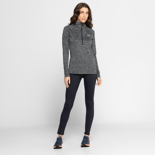 De gola ajustada por ½ zíper frontal, a Camiseta Under Armour Manga Longa Tech é muito versátil pra você combinar com bermuda, legging ou peça de sua preferência.