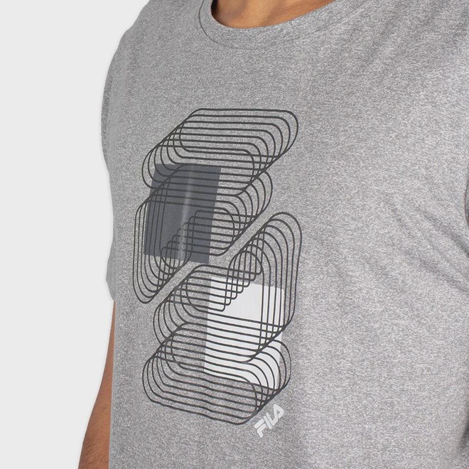 Nome: Camiseta Fila Basic Sport Print II Masculino Origem: Nacional Gênero: Masculino Indicado para: Treino Composição: 50% poliéster e 50% algodão Cor: Cinza Peso: 160g (Referente ao tamanho M)