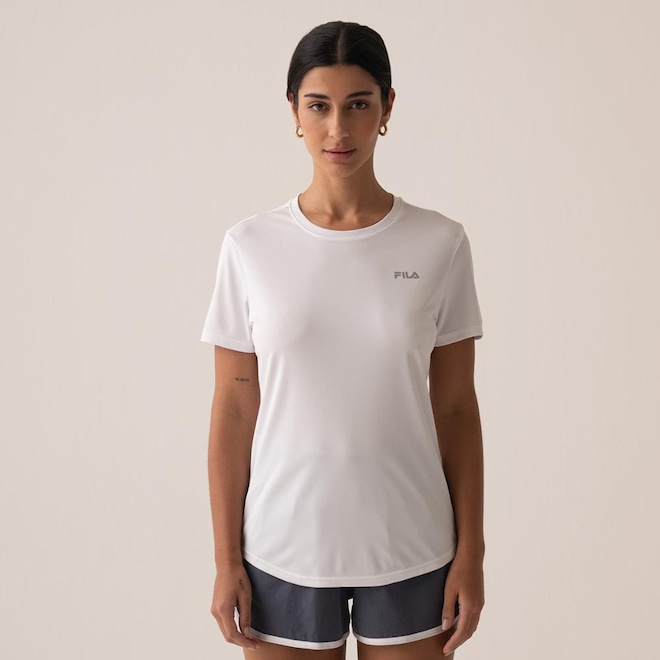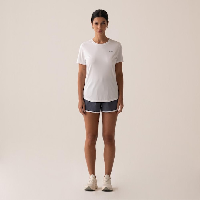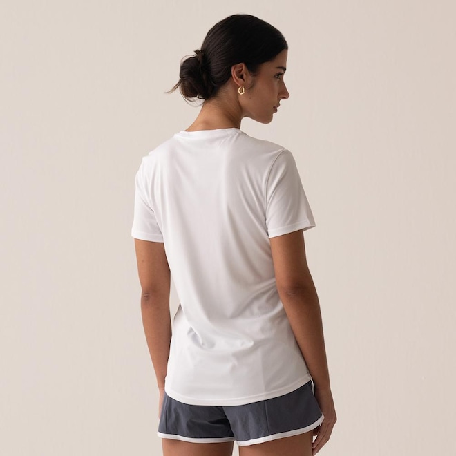 Camiseta feminina confeccionada em malha leve de poliéster elastizada com toque macio. Modelagem regular alongada com manga curta. Sustentável e prática, esta peça contém as tecnologias POLYGIENE, inovação que mantém o tecido fresco e limpo por mais tempo; a UV PROTECTION, que oferece proteção solar FPS 50+ dos raios UVA e UVB; e a FLOW, que mantém o corpo na temperatura ideal para a prática esportiva e fornece rápida secagem.ref: M17LTR