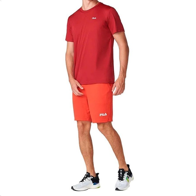 Camiseta Fila Basic Sports Polygin Vermelha - Masculina Complete seu look de treino com a camiseta masculina Fila Basic Sports. Confeccionada em poliéster, possui modelagem regular, super confortável. A gola em ribana oferece um ótimo caimento ao corpo. O tecido conta com fator de proteção solar 50+, pra você estar protegido mesmo nos dias mais quentes. A tecnologia FLOW, também presente no tecido, elimina com rapidez o suor, facilitando sua evaporação. Ela mantém o corpo na temperatura ideal para a prática esportiva e proporciona maior conforto e rápida secagem. FICHA TÉCNICA: Gênero: Masculino Indicação: Atividades Físicas Composição: Poliéster e elastano Cor: Vermelho Marca: FILA Conteúdo da embalagem: 1 Camiseta Fila Basic Sports Polygin Vermelha - Masculinaref: M104RX