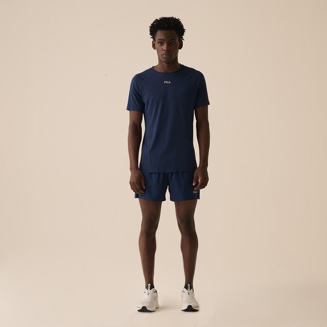 Camiseta masculina confeccionada em malha leve de poliamida, com textura sarjada. Modelagem regular com manga curta raglan e gola careca, indicada para a prática de exercícios. Seu tecido contém as tecnologias BIOTECH, que controla a proliferação de bactérias; e a FLOW, que aumenta a hidrofilidade, oferece secagem rápida e mantém o corpo na temperatura ideal para a prática esportiva. Além disso, possui costuras Flat que não causam atrito com o corpo.