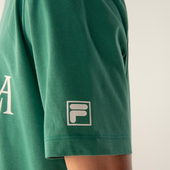 Camiseta masculina desenvolvida em malha de algodão com certificação BCI, que garante a produção sustentável da matéria-prima, e acabamento com amaciante RR, promovendo toque suave e alta capacidade de transpiração. A modelagem oversized traz gola em ribana e cobre gola Heritage. Possui silk personalizado e as cores da bandeira italiana na parte frontal, além de silk F-Box aplicado na manga.