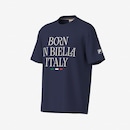 Camiseta masculina desenvolvida em malha de algodão com certificação BCI, que garante a produção sustentável da matéria-prima, e acabamento com amaciante RR, promovendo toque suave e alta capacidade de transpiração. A modelagem oversized traz gola em ribana e cobre gola Heritage. Possui silk personalizado e as cores da bandeira italiana na parte frontal, além de silk F-Box aplicado na manga.