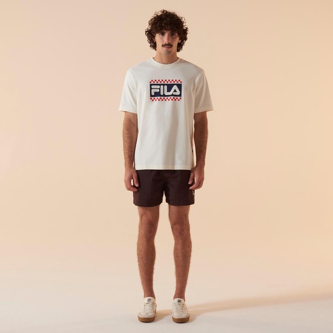 Camiseta masculina desenvolvida em malha de algodão com beneficiamento orgânico, que substitui produtos químicos tóxicos para o meio ambiente. A modelagem comfort traz gola em ribana com acabamento de tape FILA Heritage. A estampa gráfica personalizada no peito traz a inspiração do Grand Turismo. A assinatura FILA Linear e a etiqueta bandeira completam o design.