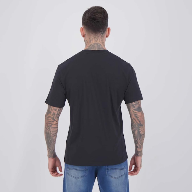Composição: 100% Algodão Cor predominante: Preta Gênero: Masculino Logo: Estampada Origem: Nacional Manga: Curta Gola: Careca Dimensões aproximadas (A x L): P: 70 x 53 cm M: 72 x 55 cm G: 74 x 57 cm GG: 76 x 59 cm EG: 78 x 61 cm EEG: 80 x 63 cm
