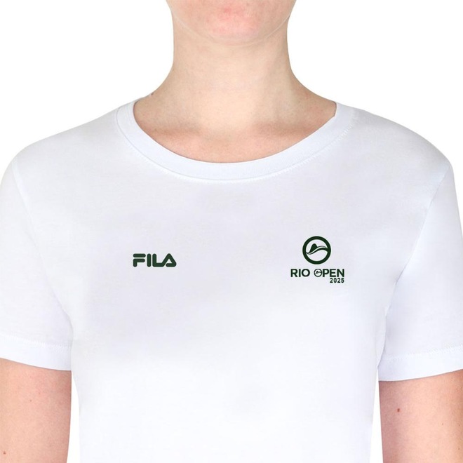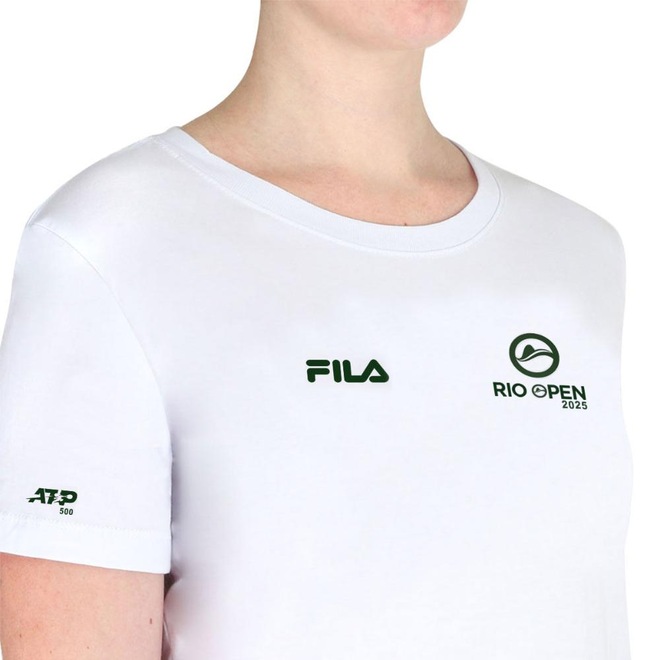 - Detalhamento: Camiseta gola careca, manga curta, estampa do evento Rio Open 2025 na altura do peito alinhada a esquerda, logo Fila estampado na altura do peito alinhado a direita, estampa FIla e Rio Open 2025 centralizados nas costas na parte superior;