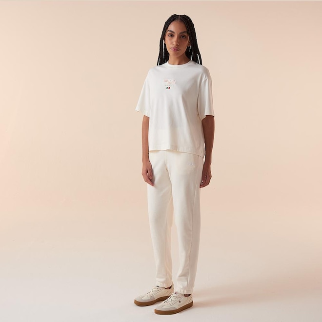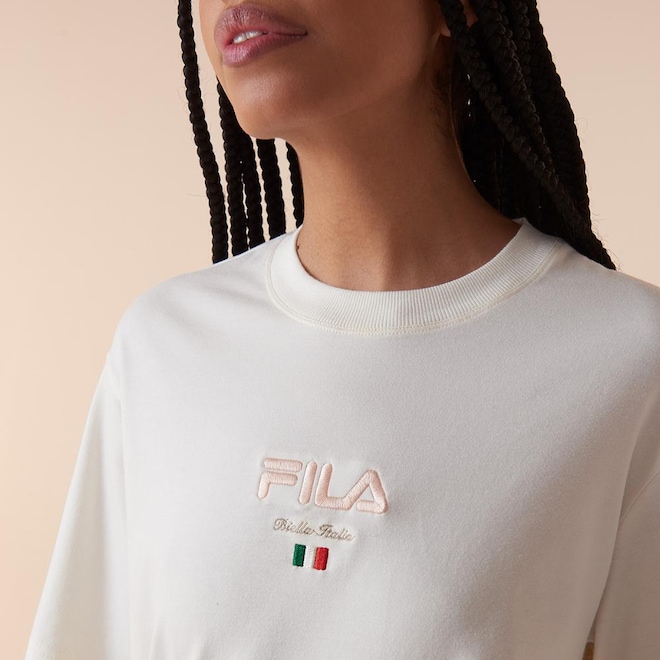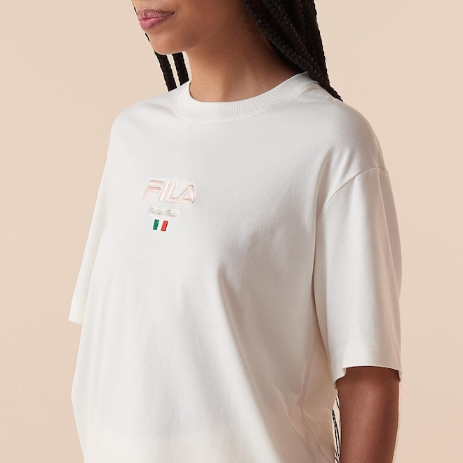 A Camiseta Feminina FILA Comfort Soft traz design clássico que reflete o DNA esportivo e versátil da marca. Confeccionada em malha 100% algodão, apresenta modelagem comfort com caimento solto e gola em ribana de 2,5 cm. Os acabamentos em duas agulhas na barra e na gola garantem durabilidade, enquanto a fita Heritage lateral esquerda e o bordado FILA Biella Italia centralizado no peito conferem autenticidade e estilo atemporal.ref: M17LV6
