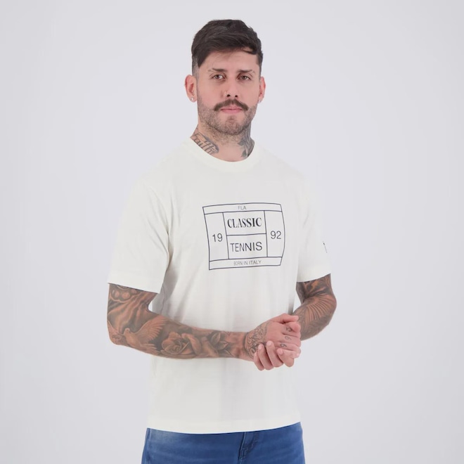 - Sobre o produto - Composição: 100% Algodão Cor predominante: Off White Gênero: Masculino Origem: Nacional Escudo: Estampado Manga: Curta Gola: Careca Dimensões aproximadas (A x L): P: 72 x 55 cm M: 74 x 57 cm G: 76 x 59 cm GG: 78 x 61 cm EG: 80 x 63 cm EEG: 82 x 65 cm - ref: M17V13
