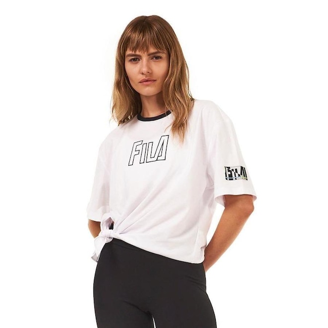 Possui amarração frontal na barra, etiqueta Fila Street Hop aplicada na manga esquerda e logo Fila Letter Street Hop em silicone alto relevo centralizado na parte frontal.
