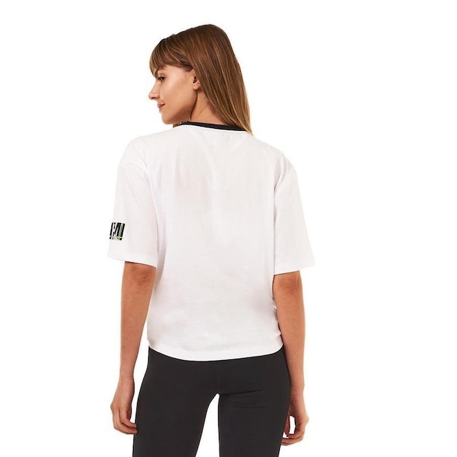 Modelagem comfort com comprimento cropped, gola careca em ribana e manga curta.