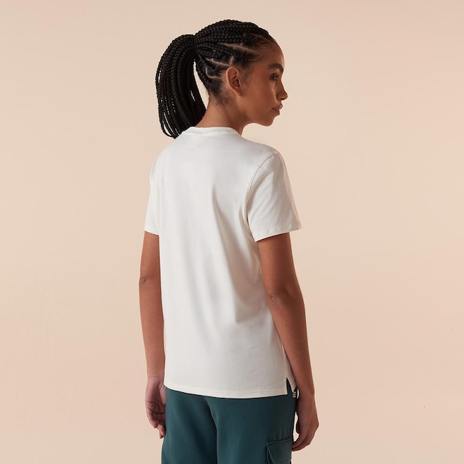 Camiseta feminina confeccionada em malha de algodão sustentável com elastano. Na modelagem regular, a peça traz certificado ecológico com selo BCI, que garante a produção responsável do algodão. Possui gola careca em ribana e manga curta, além de maxi logo FILA Letter Outline na parte frontal.