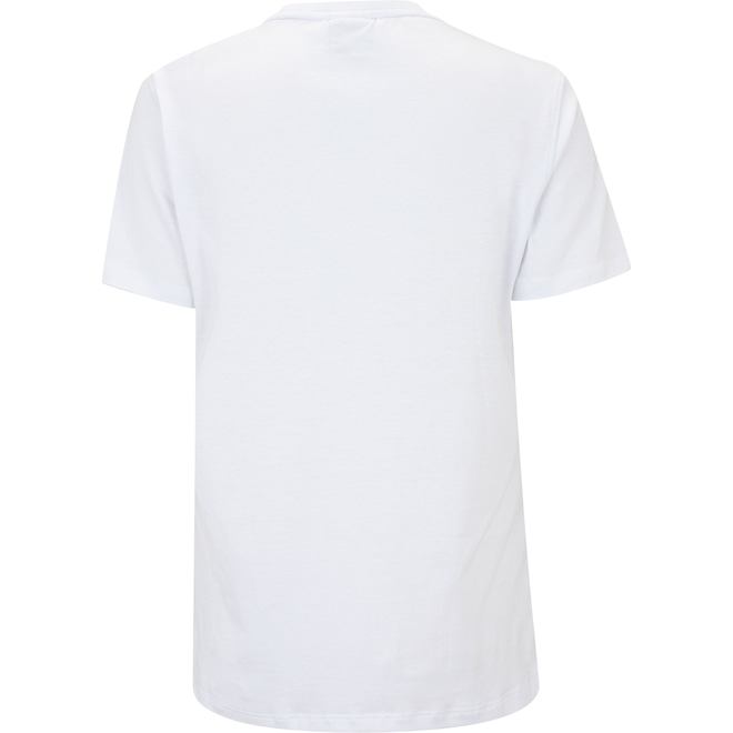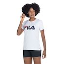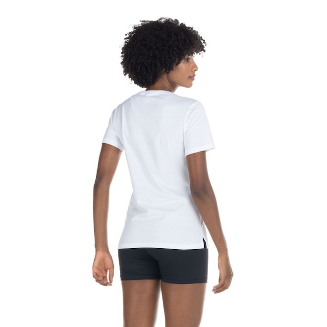 A camiseta Fila feminina é careca, canelada e com tira interna em tecido que ajuda a diminuir o atrito de contato com costura.